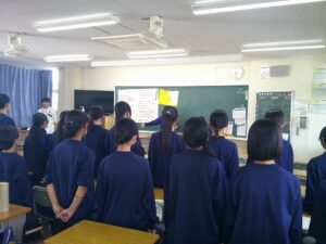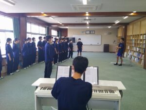 一週間後の蒼龍祭文化の部「合唱コンクール」に向けて、各クラスの練習にも熱が入っています。本日より、縦割り交歓合唱が始まりました。その学年らしさがでていました。他学年の合唱を聴くことで、「きれいだな。上手だな。」と感想をもち、「もっとうまくなりたい」と向上心をもつことができます。また、上級生は先輩として意識して合唱をしたり、下級生にアドバイスしたりすることで、聴かせる合唱を歌うことができます。