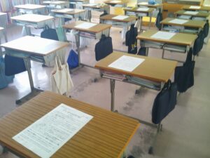9月18日(木)第2回定期テストが行われました。時間いっぱい、最後まであきらめずに取り組んでいる生徒が多かったです。休み時間にも、教科書やワーク等を見直したり、友達同士で確認し合ったりしていました。