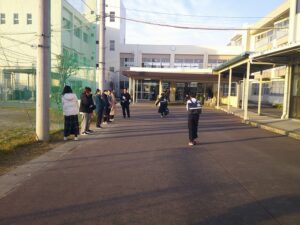 1月19日(月)に第3回避難訓練を行いました。前回に引き続き、今回も生徒だけでなく、先生方にも予告せず、さらに自由時間である昼休みに行いました。体育館で応援練習をやっている生徒、中庭でアルミ缶タワーに参加している生徒、グラウンドでサッカーをしている生徒、教室で友達と談笑している生徒など、自由に過ごしている時間に緊急地震速報が流れ、身の安全を確保した後、グラウンドに避難しました。さらに、学年で1人避難していない生徒を設定し、点呼の必要性を実感させる訓練にもしました。校長先生からは、「今回の訓練は、現実に近い形となった。先生が近くにいない。誰がどこにいるかわからない。そういう中で、自分の身を守るためにどうすればよいかを考える必要があった。準備しているときに地震はこない。非常時にはSNSのデマを信じず、正しい情報を得ることも必要だ。いざというときに想像力を膨らませてほしい。」という話がありました。
