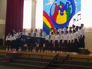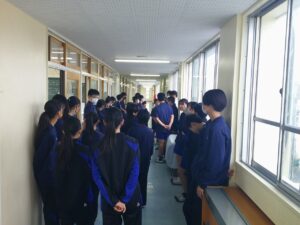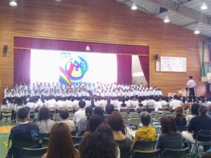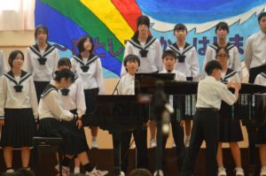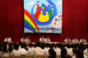 一週間後の蒼龍祭文化の部「合唱コンクール」に向けて、各クラスの練習にも熱が入っています。本日より、縦割り交歓合唱が始まりました。その学年らしさがでていました。他学年の合唱を聴くことで、「きれいだな。上手だな。」と感想をもち、「もっとうまくなりたい」と向上心をもつことができます。また、上級生は先輩として意識して合唱をしたり、下級生にアドバイスしたりすることで、聴かせる合唱を歌うことができます。