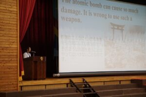 10月3日(金)蒼龍祭「文化の部」が行われました。生徒会執行部が作ったオープニングムービーから始まり、開会式のあと、筝曲部演奏、7・8・9組トーンチャイム、英語弁論の発表がありました。どの発表も日頃の成果を存分に発揮しました。その後の合唱コンクールでは、その学年らしさがよくでた合唱でした。1年生は1年生とは思えないきれいなハーモニーでした。2年生は前年よりさらにレベルアップした合唱を披露しました。そして3年生は最後の合唱コンクールで、ソプラノのきれいな高音、男子の響く声、そしてそれを生かすアルトの声が合わさり、どのクラスもすばらしい合唱でした。吹奏楽部の演奏では、途中先生方もダンスに参加し、盛り上がりました。結果発表では、歓喜と涙が合わさったものになりました。いかにこの期間、目標に向かってクラスの絆を高めてきたかがよく伝わってきました。講評の先生の涙を交えた言葉にそれを強く感じました。