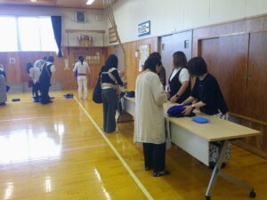 昼食時に行った制服リサイクルバザーには、多くの方が見に来られ、必要なものを購入されました。帰りの会の後には、吹奏楽部や箏曲部、生徒会執行部、実行委員が片付けを行いました。生徒の成長を感じ、感動した一日になりました。