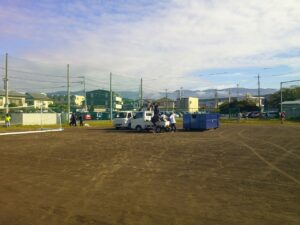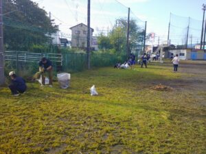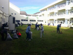 10月5日(日)生徒81名、保護者112名、地域の方6名、教職員で、PTA奉仕作業を行いました。前日の雨で多少草が湿っていたものの、早朝7時から保護者や地域の方が草刈りをしてくださいました。その刈った草を、8時から生徒と保護者で回収しました。