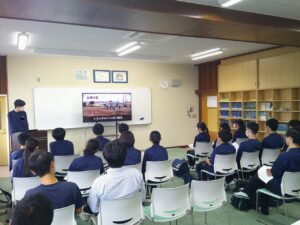 9月29日(月)には、函南町役場から、環境衛生課、上下水道課、福祉課、学校教育課、産業振興課、企画財政課の担当者が来校し、第6次函南町総合計画の紹介と各課の紹介をしてくれました。ゴミの量を減らすために・・・、誰もが活き活き暮らせる町づくりのために・・・、函南町が取り組む情報を発信するために・・・という話を、生徒はメモをとりながら真剣に聞いていました。