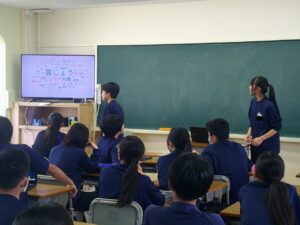 10月7日(火)帰りの会で、蒼龍祭「文化の部」と同じように、クラスごと「体育の部」の目標を決めました。文化の部で学級としてどんな成長があったのか、体育の部が終わった後、どんな学級になっていたいかを話し合いました。学年委員や縦割りリーダーが司会として話し合うクラスもあれば、個々にロイロノートに想いを書き込んだものを全員が見るクラスもありました。