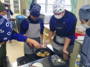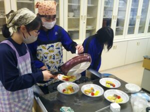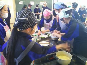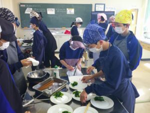 1年生は家庭科の時間に調理実習を行いました。クラスごと何を作るか、どのメンバーで作るかを考えてきたようで、どのグループも手際よく、調理と片付けを協力しながら作っていました。自分たちで作った「鮭のムニエル」と「鯖の味噌煮」は美味しかったようです。