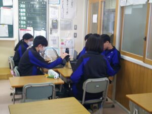2月19日(木)は第4回定期テストです。学習委員会がテスト1週間前から、自主勉強できる「函スタ」の場を設定し、多くの生徒が自主的に学習に取り組んできました。テスト前日である2月18日(水)の放課後には磨き合いタイムがあり、先生に質問したり、友達と教え合ったりする姿が見られました。