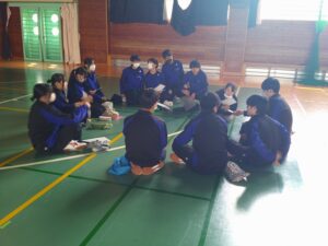 2月12日(木)13日(金)の2日間、生徒会企画「部活動対抗駅伝」が昼休みに行われました。5人ひと組で、部に関係のある道具をたすきとして、400mほどを走りました。部活動を引退した3年生も参加したり、1年部の先生方も参加したり、多くの生徒が応援したりと、盛り上がりました。