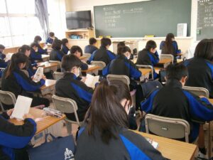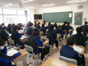 3月18日(水)1・2年生も学級解散式を行いました。写真で1年間を振り返ったり、クラスの生徒についてのクイズをしたり、カードゲームをしたり、1年間の思い出を語ったりと、生徒が企画するクラスもあれば、先生が企画するクラスもありました。