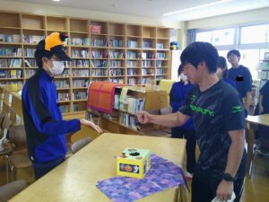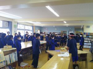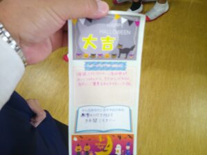 10月16日(木)図書室で、ハッピー☆ライブラリーおみくじが開催されました。図書委員とじゃんけんをして勝つと、図書館ボランティアの方々が作ってくださったハッピーになれるおみくじとおすすめの本が書かれている手作りのおみくじがもらえます。さらにしおりやブックカバーがもらえる企画が行われ、多くの生徒が参加しました。じゃんけんに負けると、何度も並び直す生徒がいましたが、あまりにも好評であっという間におみくじがなくなりました。