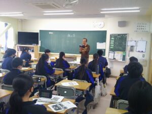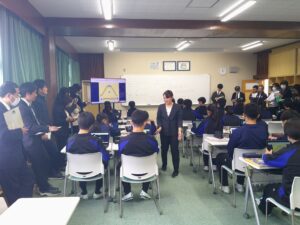 11月6日(木)先生たちの授業力向上の研修が行われました。30人を超える先生方に見られた生徒はかなり緊張したと思いますが、生徒の発言や考えたことをもとに、事後研修に取り組みました。外部から講師の先生をお呼びし、講話を聞きました。明日からの授業に生かします。