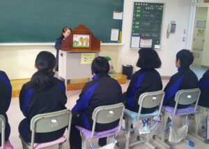11月5日(水)第5回読み聞かせがありました。人権擁護委員、音読グループの方、朗読サークルの方、読み聞かせボランティアの方々が、生徒のために用意した本を読んでくださいました。絵本よりも小説等の読み聞かせが多く、生徒は想像力を膨らませながら、聞いていました。