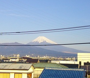 3階の廊下から外を見たら、富士山がきれいに見えました。