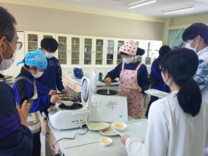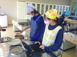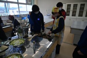 特別支援学級では、3/5(木)公立入試の日に調理実習を行い、自分たちの昼食にするだけでなく、先生方にも販売しました。小盛、大盛の量だけでなく、甘口、中辛、辛口の辛さも選べるカレーライスは、先生方にも好評でした。