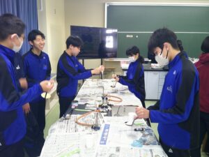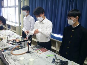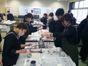 3年生:最後の教科授業② 投稿日時: 2026年3月12日 投稿者: user 理科では、カルメ焼きを作りました。2年次に一度作っているようですが、悪戦苦闘しながら作っていました。大きく、膨らんだカルメ焼きができた生徒は、満足そうでした。