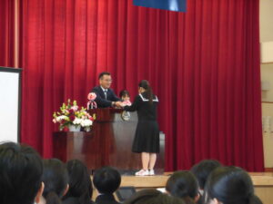 新しいクラス、担任、部活動顧問等の発表があり、歓喜の声があがりました。