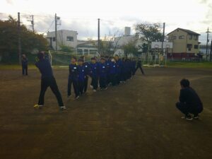 10月に入り暑さは和らいだものの、例年になく、雨の日が多くなっています。朝は長縄の練習ですが、連日の雨でほとんどできておらず、生徒からも焦りが見え始めました。10月21日(火)は総練習ですが、朝からポツポツと雨が。午後になり、雨はやんだものの、半袖では寒いくらいの陽気でした。執行部や実行委員を中心に、事前に係総練習で確認したことで、各係の連携もスムーズで、予定時間通りに進みました。競技も一部行いましたが、総練習とはいえ、一生懸命取り組んでいる姿が印象的でした。