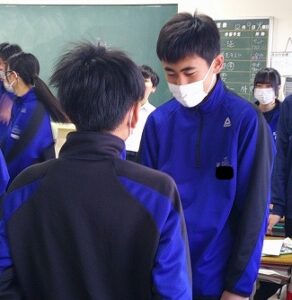 3年生は、高校入試の面接試験に向けて、面接の練習を進めています。資料をもとに、入退室やノックの仕方等のマナーを学び、質問内容を考えてきました。担任の先生や学年部の先生が面接官となり、実際に面接練習をし始めました。まだまだ所作や受け答えに課題がありますが、本番に向けて練習を重ねていきます。