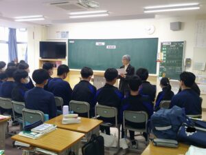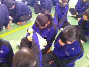 12/10(水)2年生は、助産師から「命の話 身体の話」について話を聞きました。男女の身体の違いについてや、命の誕生は奇跡的であること、自分と同じようにまわりの人の命も大事にすること等を聞きました。また、赤ちゃんの人形を実際に抱き、その重さを実感していました。