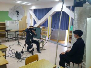 また、卒業アルバムの個人写真を撮影しました。カメラマンの声かけによって、笑顔でよい表情で撮影が進んでいきました。
