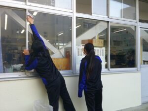 12月23日(火)は2学期最終日でした。大掃除では、教室のエアコンや窓など、隅々まできれいにしたり、床をスポンジで磨いたりしました。