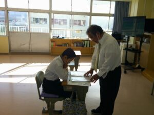 3年生は、高校入試の面接試験に向けて、面接の練習を進めています。資料をもとに、入退室やノックの仕方等のマナーを学び、質問内容を考えてきました。担任の先生や学年部の先生が面接官となり、実際に面接練習をし始めました。まだまだ所作や受け答えに課題がありますが、本番に向けて練習を重ねていきます。
