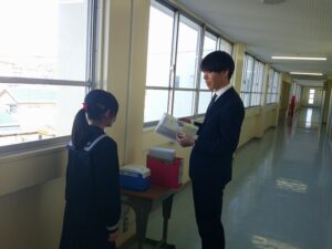 函南町には花苗等支給事業があり、年間2回パンジーやノースポール等の苗をいただいています。後期に発足した福祉委員会は、募金活動やアルミ缶回収活動に取り組んでいますが、12月11日(木)の放課後に、花苗を植える活動をしてくれました。昇降口や玄関前が華やかになりました。