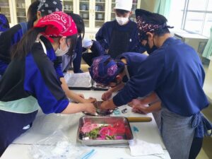2年生は家庭科の授業で、クッキーづくりをしました。生地をこね、のばし、型を作り、オーブンで焼き、完成です。グループで協力しながら、楽しそうに作業していました。