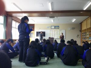 3月2日(月)3年生は、保健体育の時間に「アスルクラロ全力教室」を行いました。アスルクラロに所属するコーチが学校を訪問し、生徒にサッカーを教えてくれました。ストレッチを兼ねてボールを投げたり、まわりを見ながらドリブルをしたりしたあと、男女に分かれ、ペアやグループになってパスをしたり、シュートをしたりしました。いいプレーをするとコーチが褒めてくれるので、生徒はうれしそうでした。最後にゲームを行い、気持ちのよい汗をかいていました。